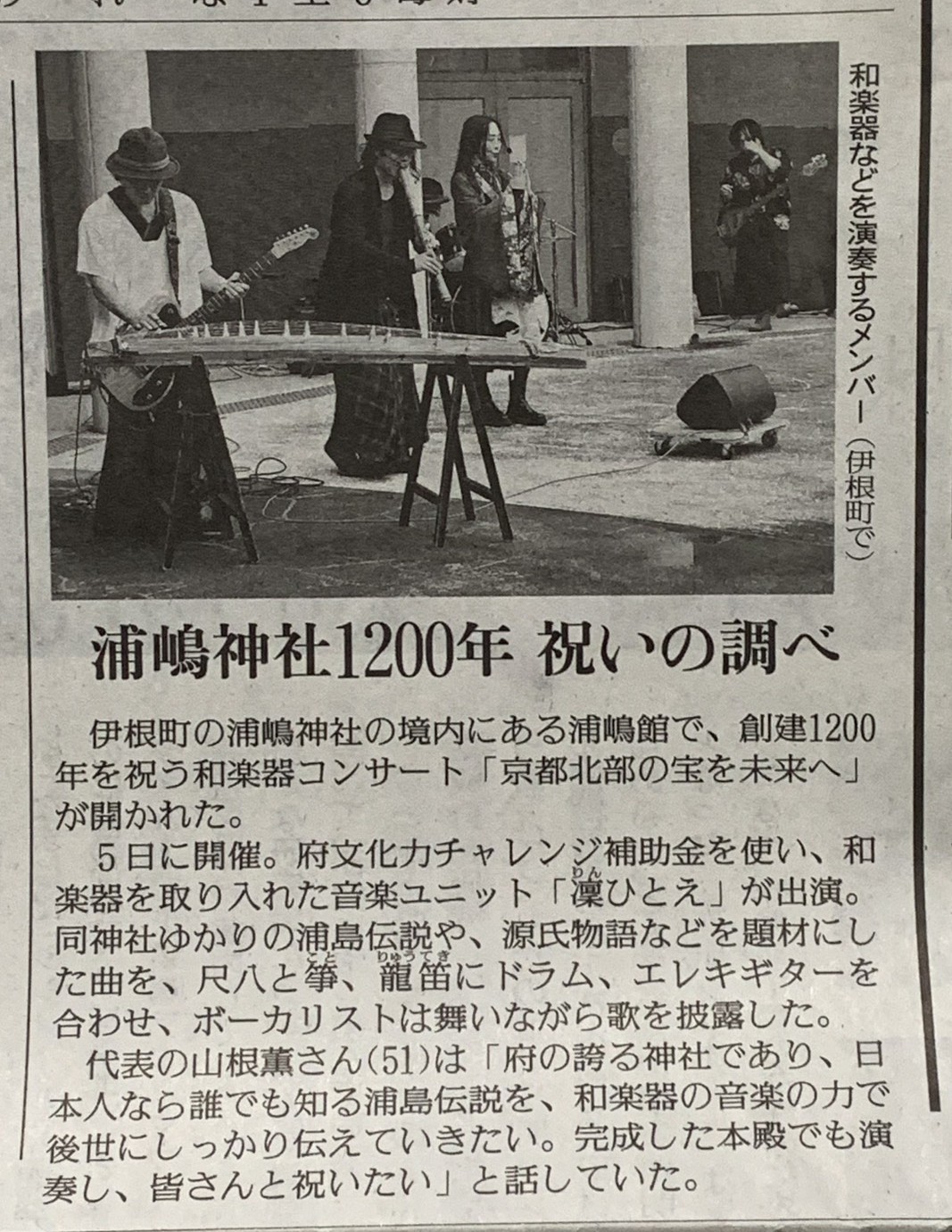 京都府文化力チャレンジ採択事業として実施した、浦嶋神社の創祀1200年を祝う単独コンサートの記事が読売新聞に掲載されました。